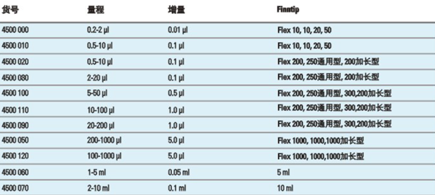 10-100μl, 20-200μl, 100-1000μl。 |